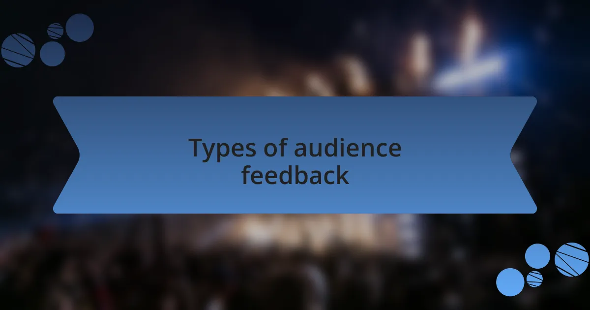 Feedback from the audience can be categorized in various forms. Some guests leave reviews on social media, sharing their experiences with the broader community. This public feedback can serve as a powerful tool for attracting new patrons, as I often find that a glowing review can be more persuasive than traditional advertising. Have you ever noticed how a single rave review can elevate a venue’s reputation overnight?