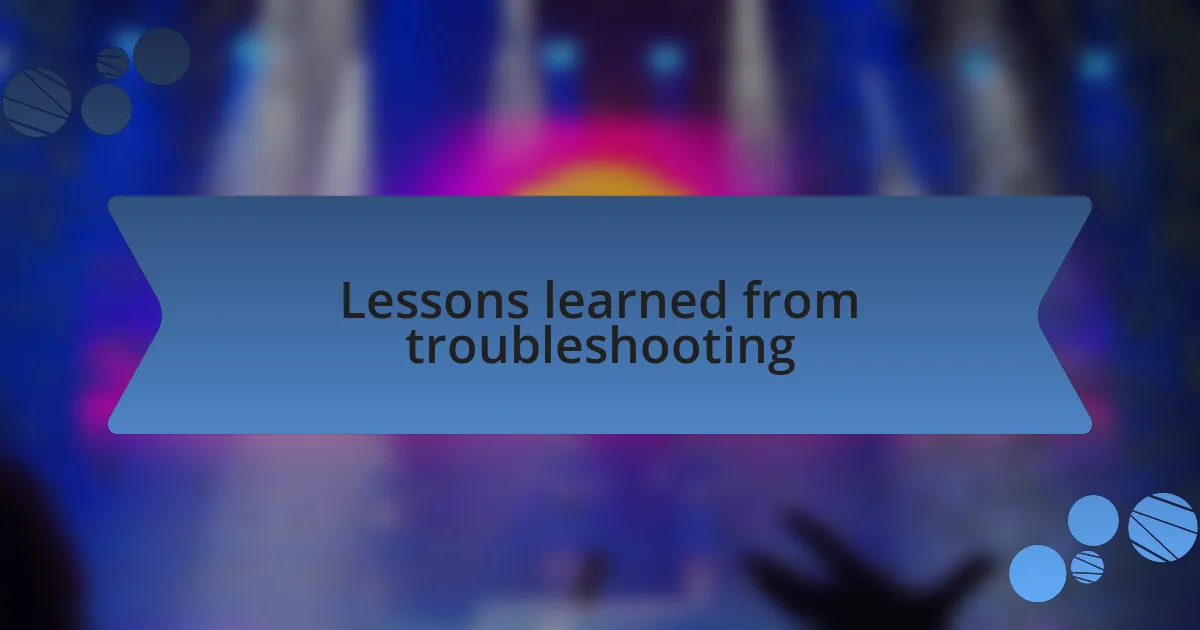 Another key lesson for me was the importance of thorough documentation. While grappling with a particularly tricky sound issue related to external equipment, I decided to jot down every detail of the process. This not only helped me pinpoint the problem faster but also created a reference for future gigs. Isn’t it reassuring to remember details for the next time instead of starting from scratch?