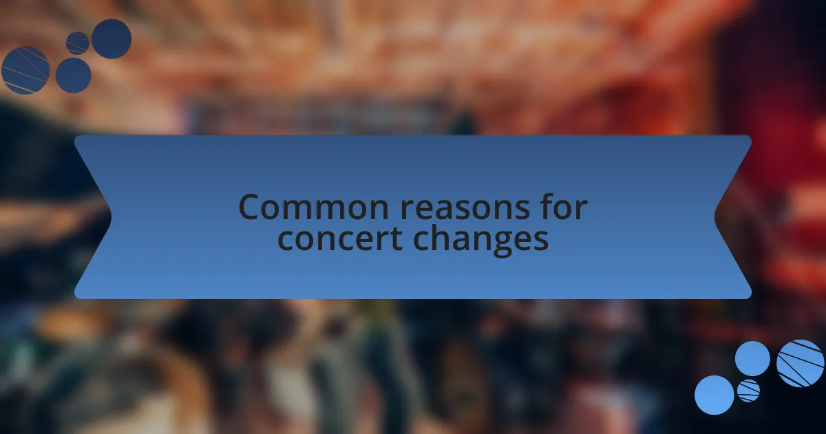 Technical problems are another common reason for unexpected concert shifts. I vividly recall a show where the sound equipment failed just before the band was set to perform. Initially, the crowd was restless, but the crew’s efficiency impressed me as they quickly resolved the issues. This showcases not just the unpredictability of live events, but how a team’s hard work can turn potential disaster into an incredible showcase of resilience. Isn’t it interesting how these moments shape our concert-going experiences?
