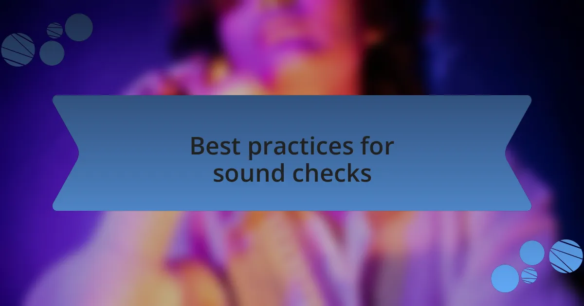 A sound check should be approached with purpose and clarity. I remember one unforgettable evening when a last-minute sound check revealed a feedback issue I hadn’t noticed earlier. It was a real eye-opener that taught me to arrive well ahead of the performance time. Have you ever been caught off guard with sound problems? I’ve learned that allowing ample time for adjustments can really make or break the atmosphere of the show.